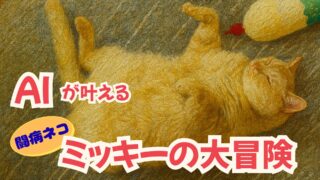ミッキーとの毎日 『AI』は頼れる伴走者 ~ともにミッキーを見守る安心の日々~ ミッキーの闘病生活ではAIにずいぶん助けられました。情報を得るだけでなく心の支えにもなった体験を、いち飼い主としてのリアルな視点でご紹介します。最後の動画では「箱入り王子」のミッキーがAIの力で外の世界を旅する姿、ぜひご覧ください! 2025.09.04 ミッキーとの毎日
