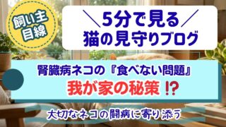 猫が腎臓病で食べない…そんな悩みに寄り添う5分動画を公開。ステージ4の愛猫ミッキーが食欲を取り戻した「我が家の秘策」を音声と映像で分かりやすく解説します。同じ悩みを持つ飼い主さんのヒントになれば幸いです。