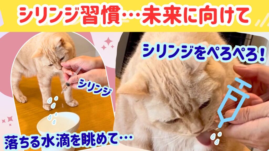 このシリンジを使った「お水ポタポタ作戦」は、飼い主が最も大切にしている習慣です。