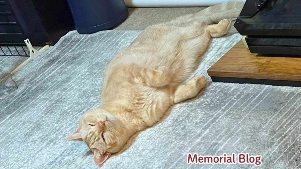 上の写真はミッキーが最後にお腹を見せてゴロン……のショットです。2月の寒い時期でしたが、ここはエアコンが直接当たる一等地。温かくて気持ちよさそうです。
